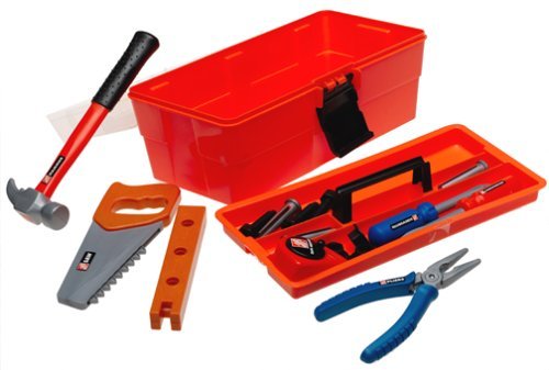 The Home Depot Tool Box is a sturdy plastic box with a translucent top and an orange bottom and it includes a hammer 2 screwdrivers pliers wood saw nuts bolts nails and a tape measure Manufacturers Age 3 years and upBRThe Home Depot Tool Box is a sturdy plastic box with a translucent top Read More..